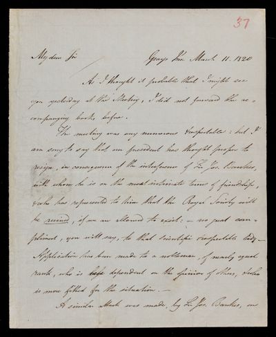 11 March 1820 Sender: Francis Baily , Francis Baily Reference number: HS/3/37