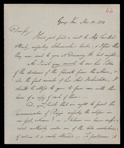 10 November 1821 Sender: Francis Baily , Francis Baily Reference number: HS/3/44