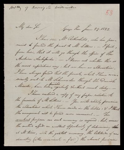29 June 1822 Sender: Francis Baily , Francis Baily Reference number: HS/3/53