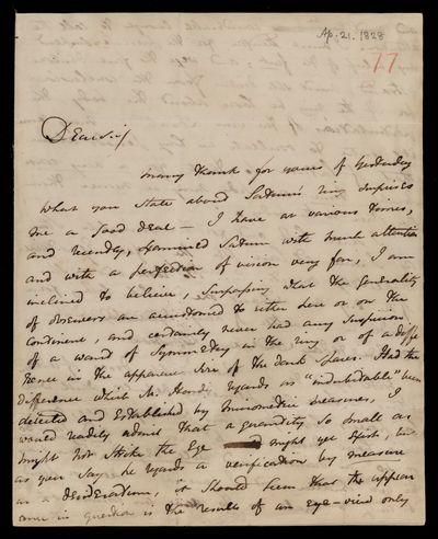 17 February 1821 Sender: Francis Baily , Francis Baily Reference number: HS/3/39
