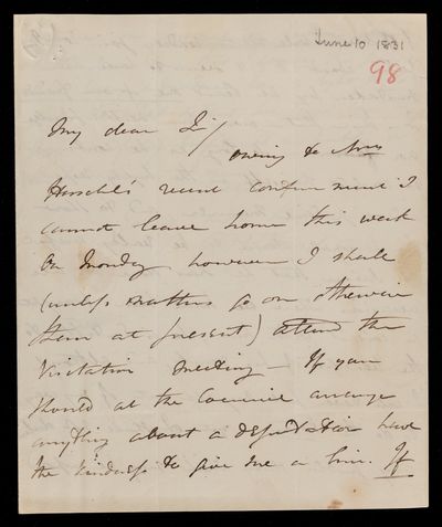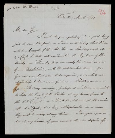 Autograph letter signed by sender. Is making arrangements for the Committee meeting. Will bring some copies of the Eclipse for John Frederick William Herschel.