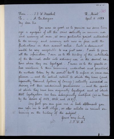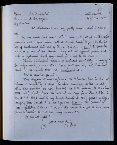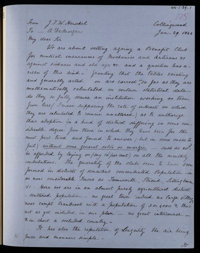 30 January 1844 Sender: Augustus de Morgan Reference number: HS/6/190