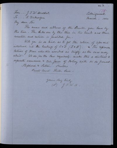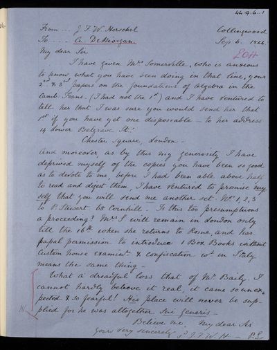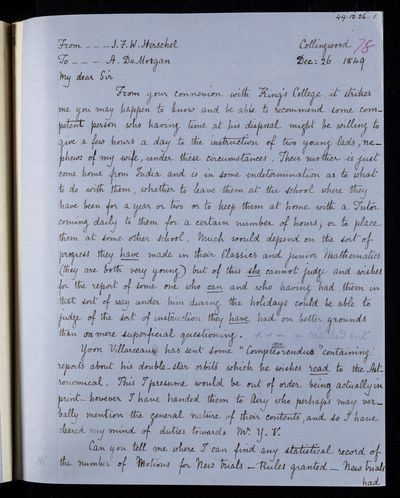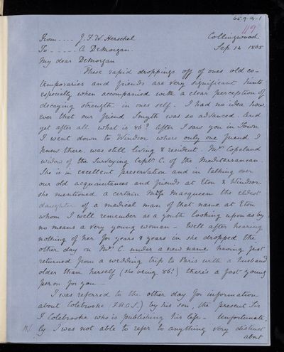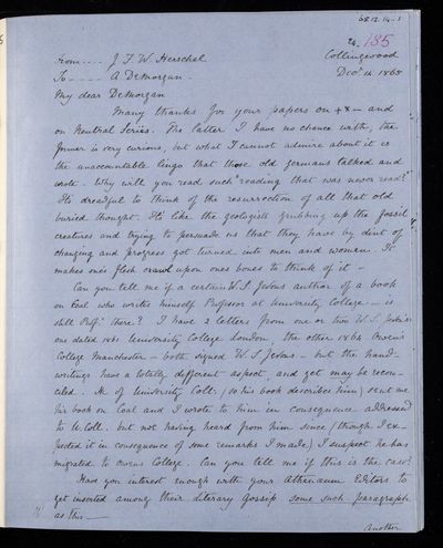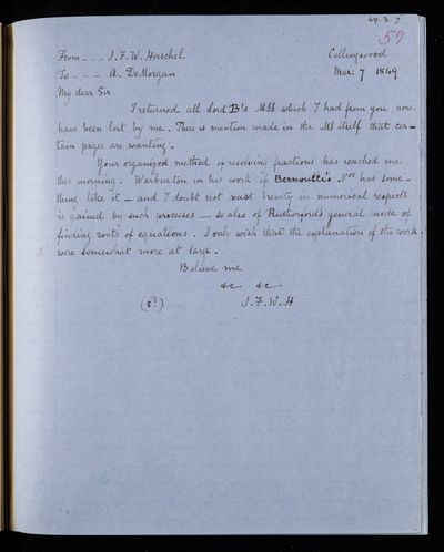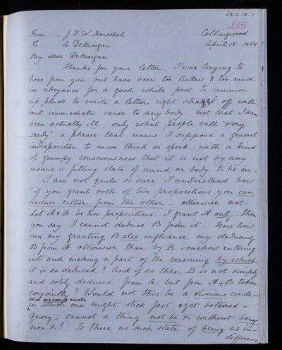 Sender: Augustus de Morgan Reference number: HS/6/429