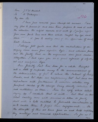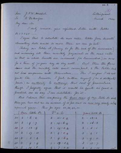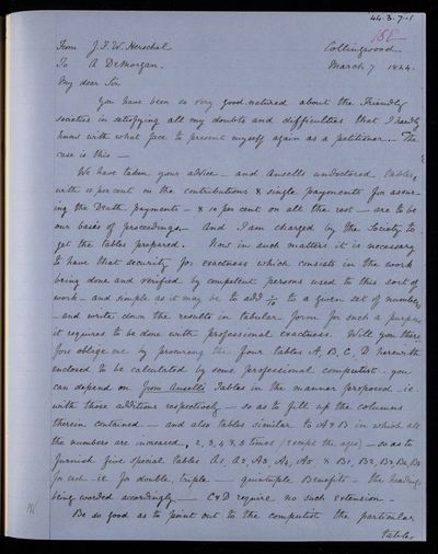 March 1844 Sender: Augustus de Morgan Reference number: HS/6/193
