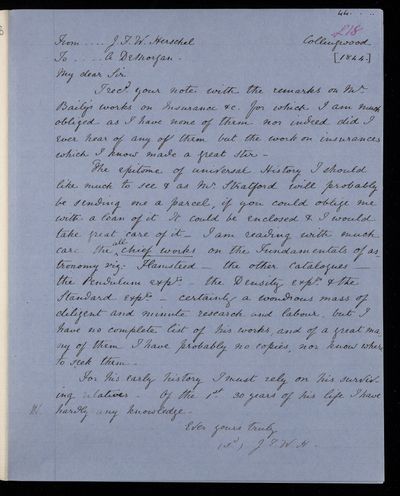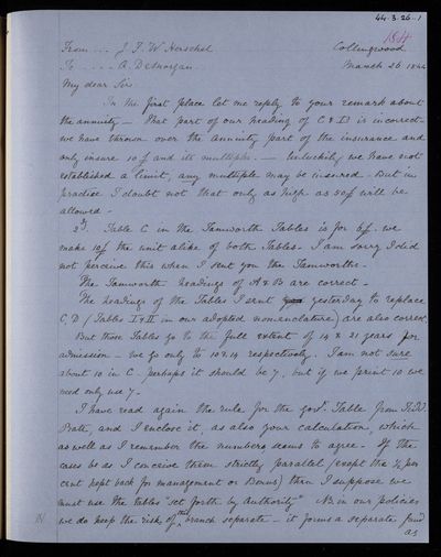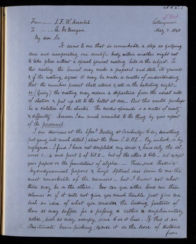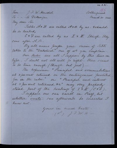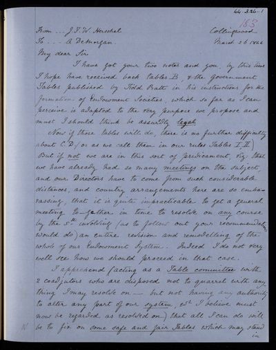 25 March 1844 Sender: Augustus de Morgan Reference number: HS/6/196