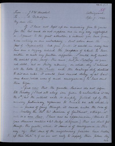 Sender: Augustus de Morgan Reference number: HS/6/432
