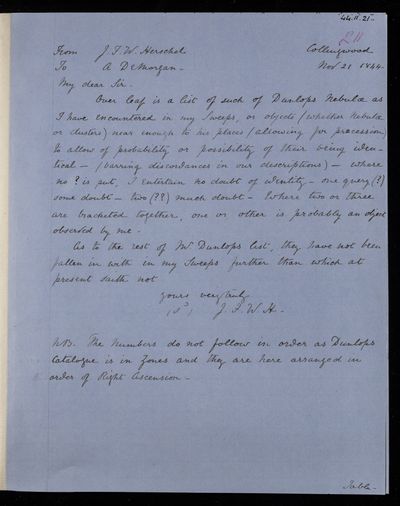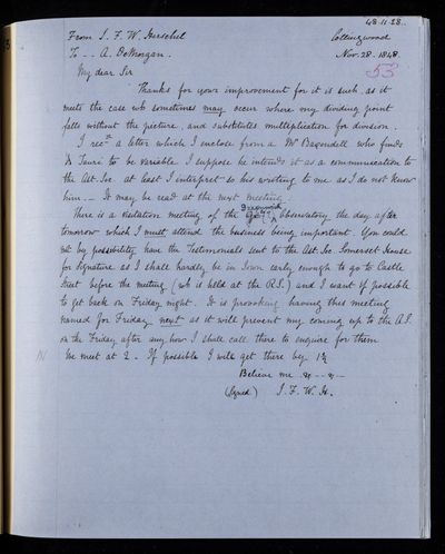 17 November 1842 Sender: John Frederick William Herschel Reference number: HS/22/142