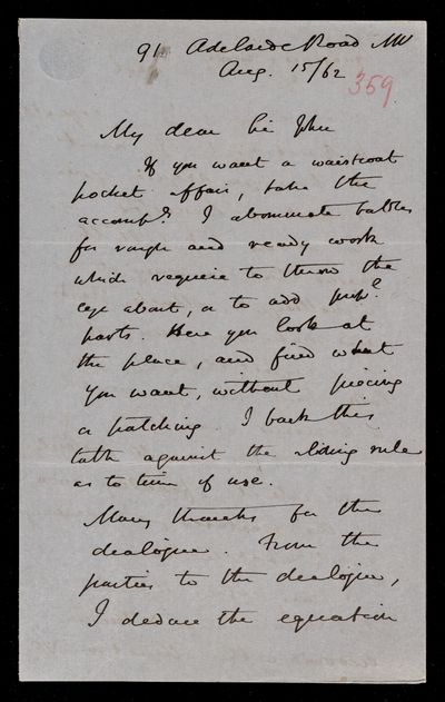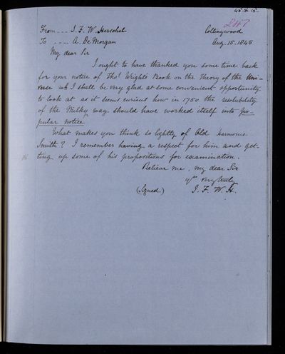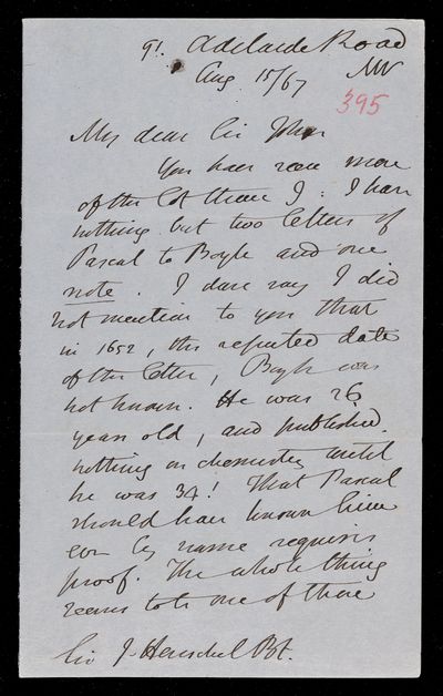 15 August 1867 Sender: Augustus de Morgan Reference number: HS/6/395