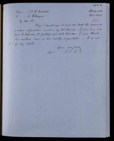 Sender: Augustus de Morgan Reference number: HS/6/426