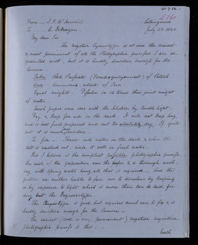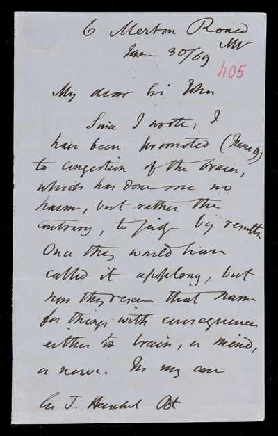 1 July 1869 Sender: John Frederick William Herschel Reference number: HS/24/273