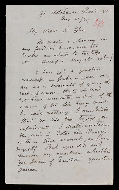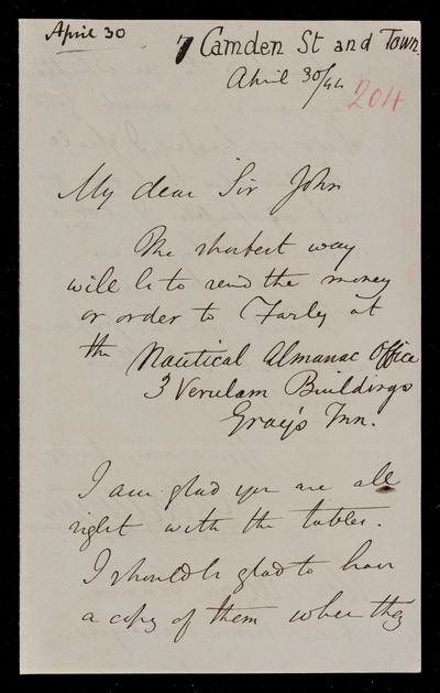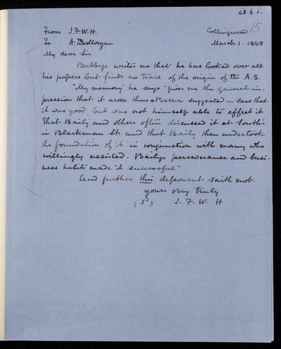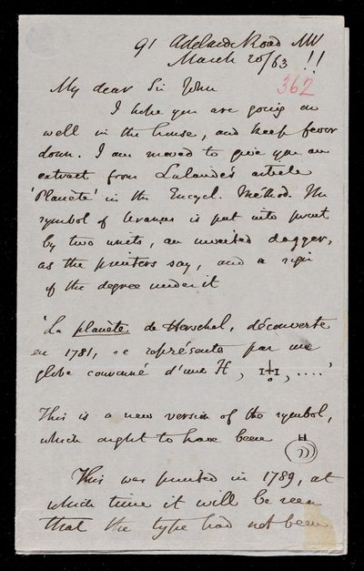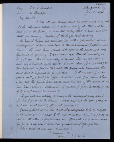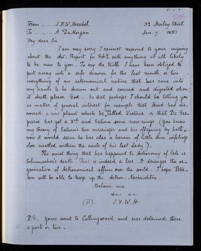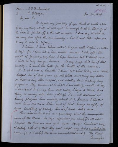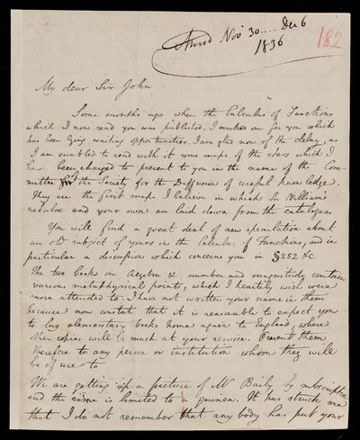 30 November 1836 Sender: John Frederick William Herschel Reference number: HS/25/5/4Victoria becomes Queen of the United Kingdom