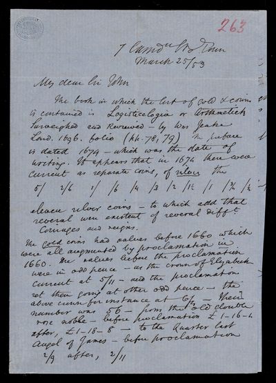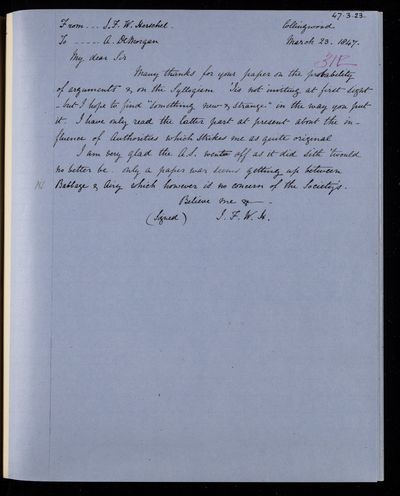 24 March 1844 Sender: Augustus de Morgan Reference number: HS/6/195
