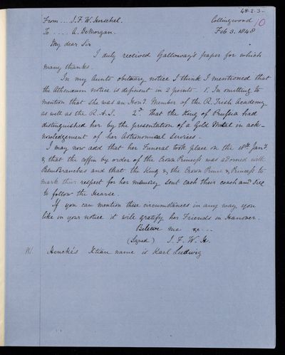 10 February 1844 Sender: Augustus de Morgan Reference number: HS/6/192