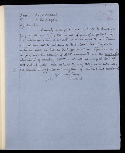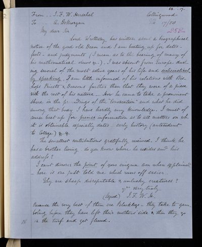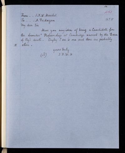 Sender: Augustus de Morgan Reference number: HS/6/431