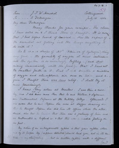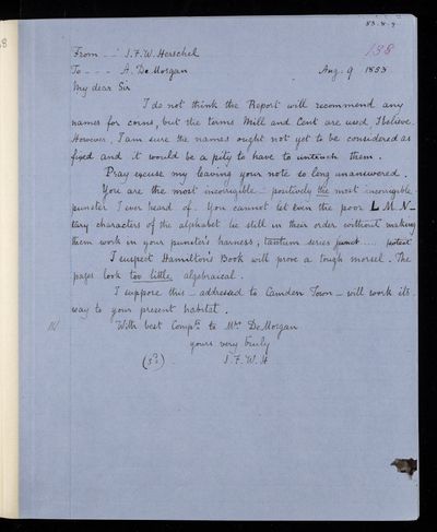 18 July 1832 Sender: Augustus de Morgan Reference number: HS/6/177