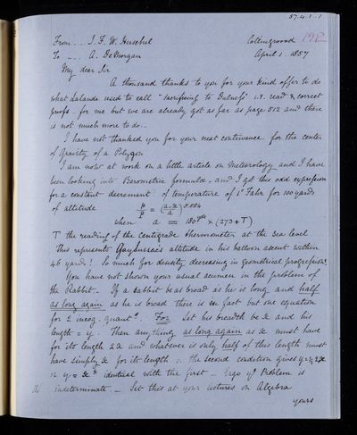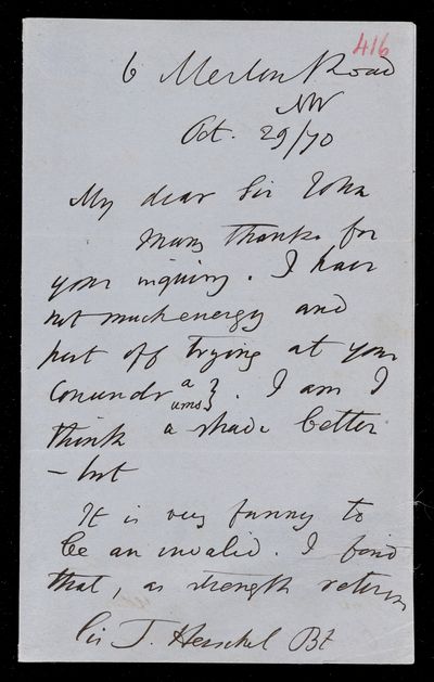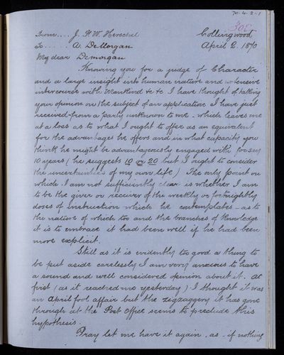 2 April 1870 Sender: John Frederick William Herschel Reference number: HS/24/302