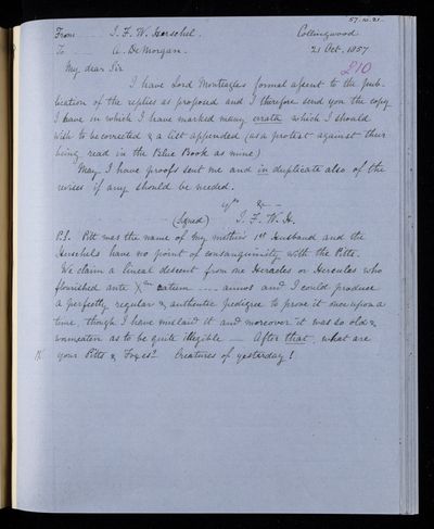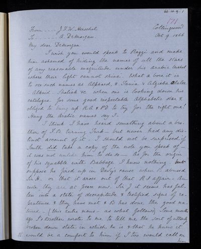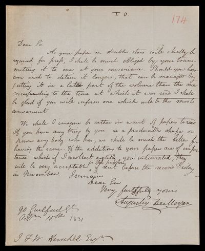 10 October 1831 Sender: Augustus de Morgan Reference number: HS/6/174