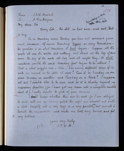 2 October 1832 Sender: Augustus de Morgan Reference number: HS/6/178