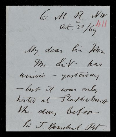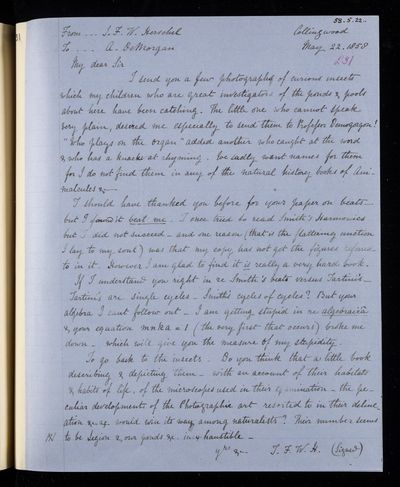 11 May 1869 Sender: John Frederick William Herschel Reference number: HS/24/258