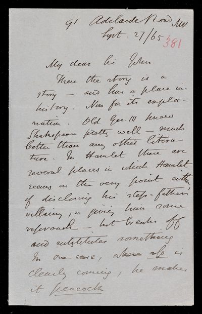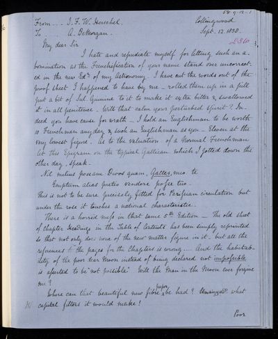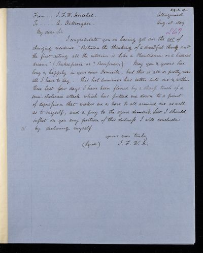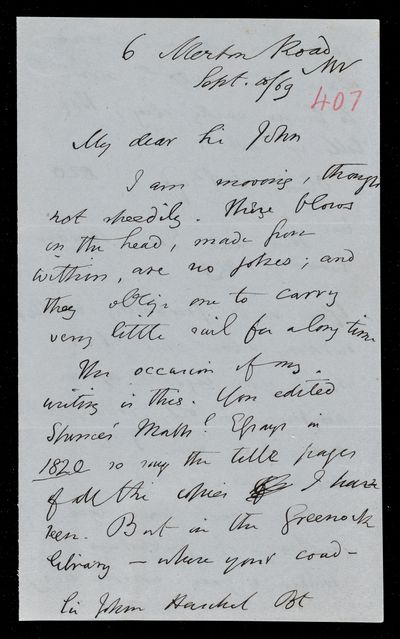 10 September 1869 Sender: Augustus de Morgan Reference number: HS/6/407
