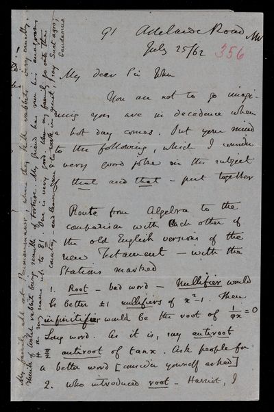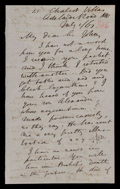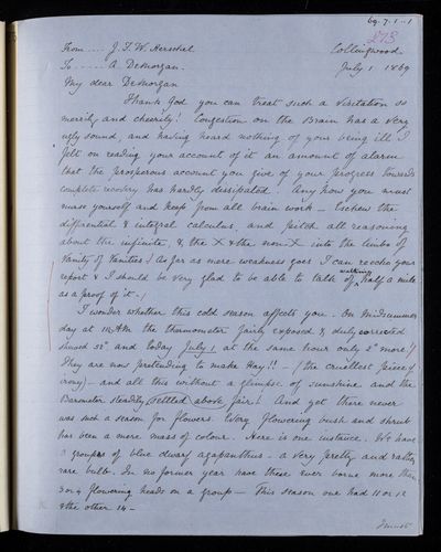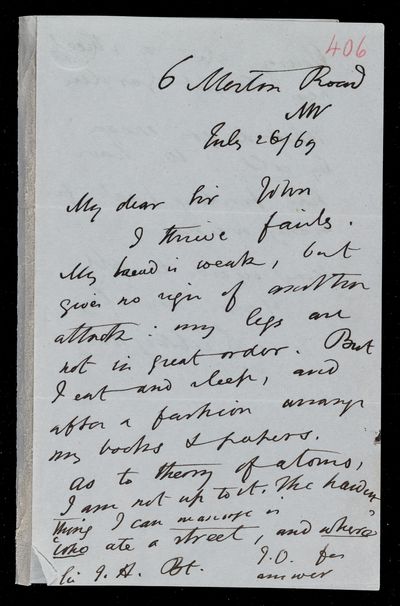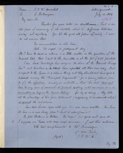 26 July 1869 Sender: Augustus de Morgan Reference number: HS/6/406