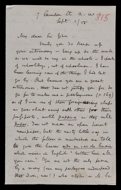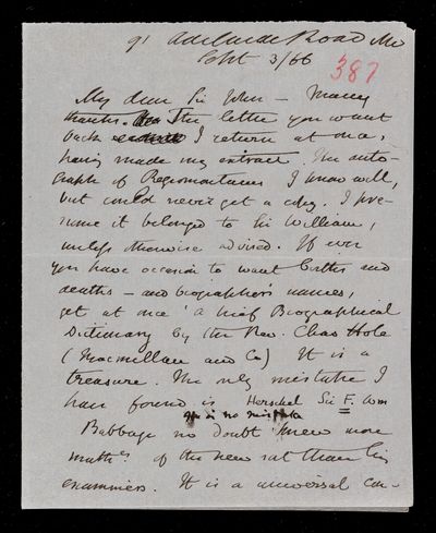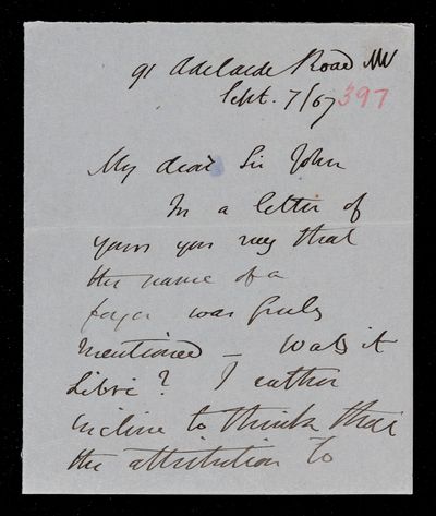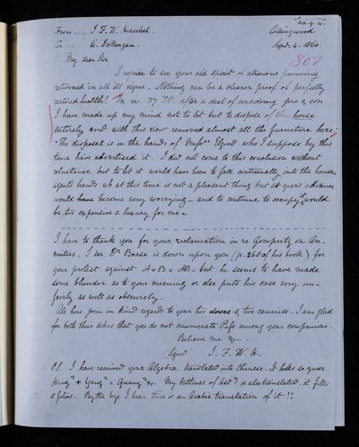 7 September 1867 Sender: Augustus de Morgan Reference number: HS/6/397