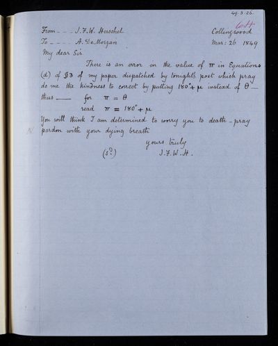 Sender: Augustus de Morgan Reference number: HS/6/425