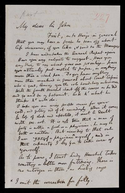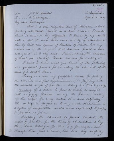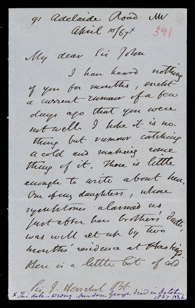 25 April 1867 Sender: John Frederick William Herschel Reference number: HS/24/193