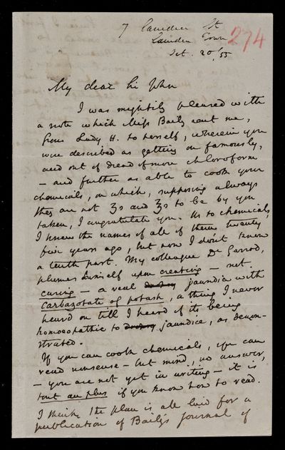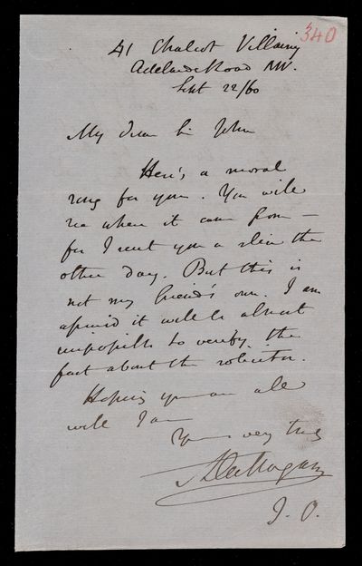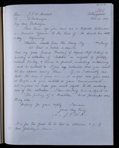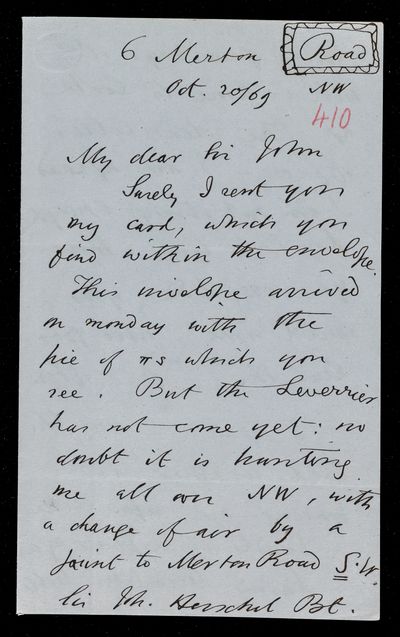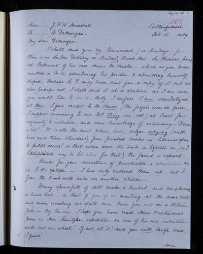 20 October 1869 Sender: Augustus de Morgan Reference number: HS/6/410