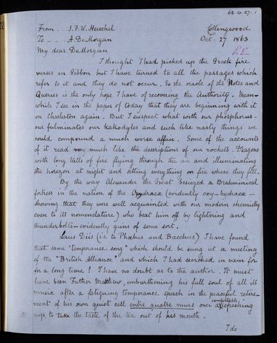22 October 1869 Sender: Augustus de Morgan Reference number: HS/6/411