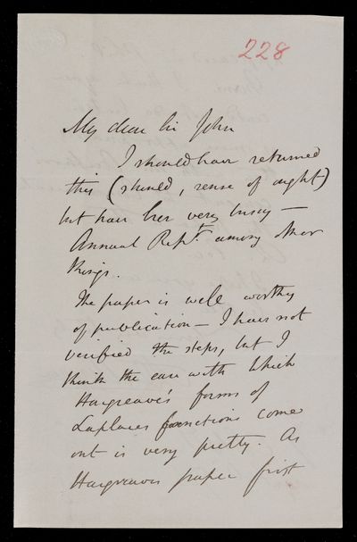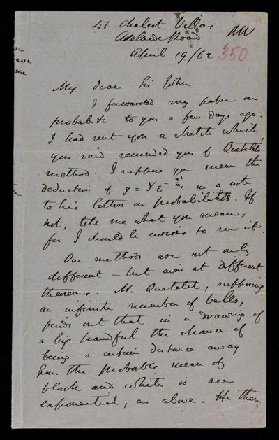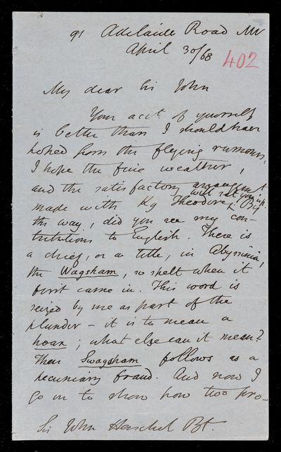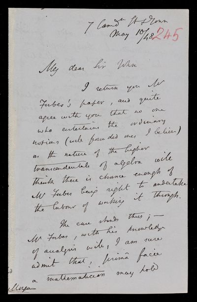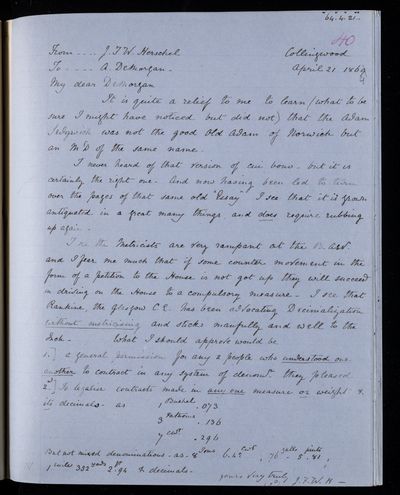 30 April 1868 Sender: Augustus de Morgan Reference number: HS/6/402
