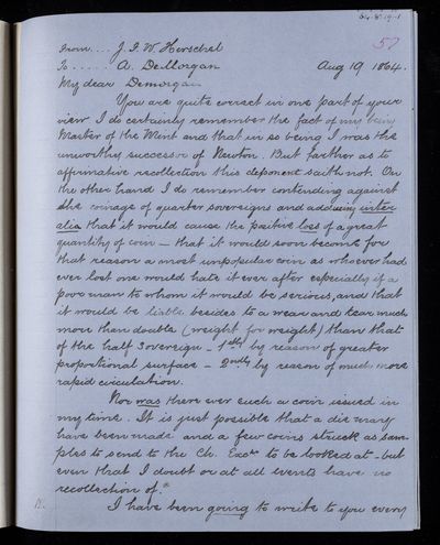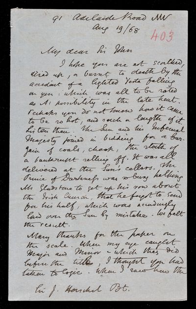 19 August 1868 Sender: Augustus de Morgan Reference number: HS/6/403