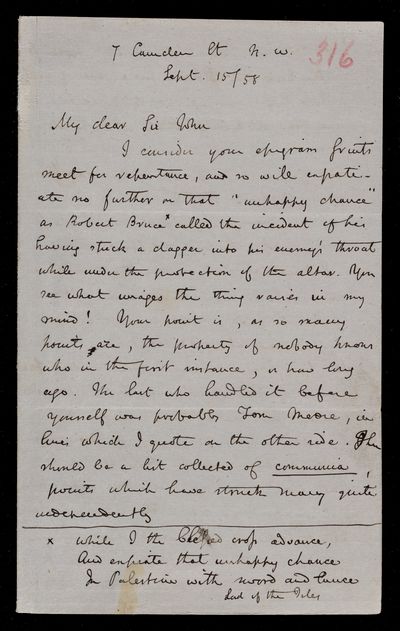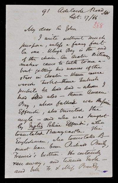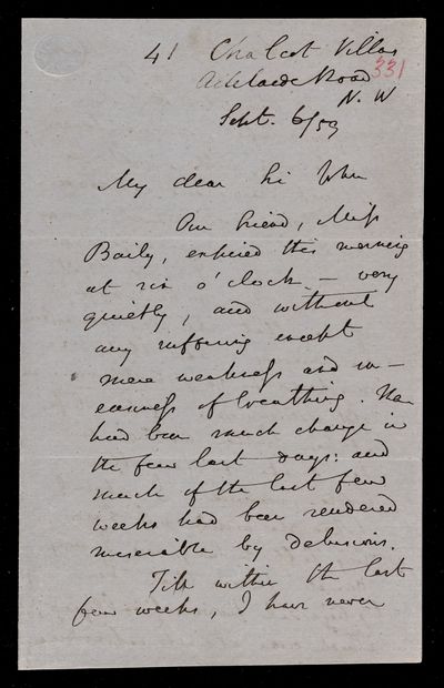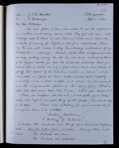 26 September 1869 Sender: Augustus de Morgan Reference number: HS/6/409