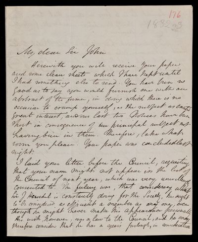 1832? Sender: John Frederick William Herschel Reference number: HS/25/14/6Sir John Herschel receives the Royal Medal from the Royal Society