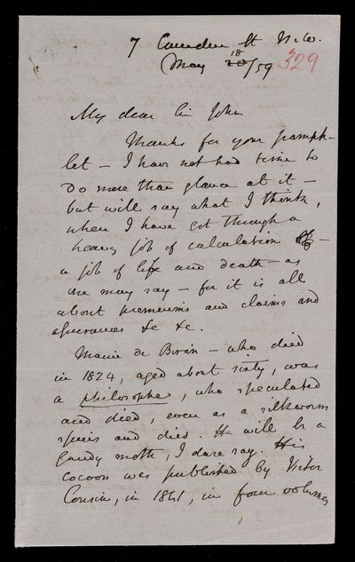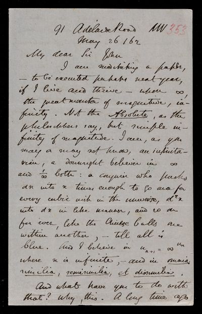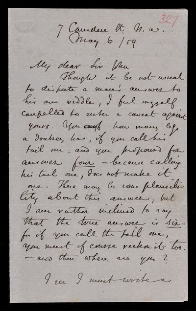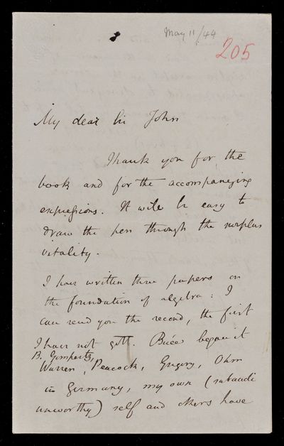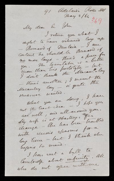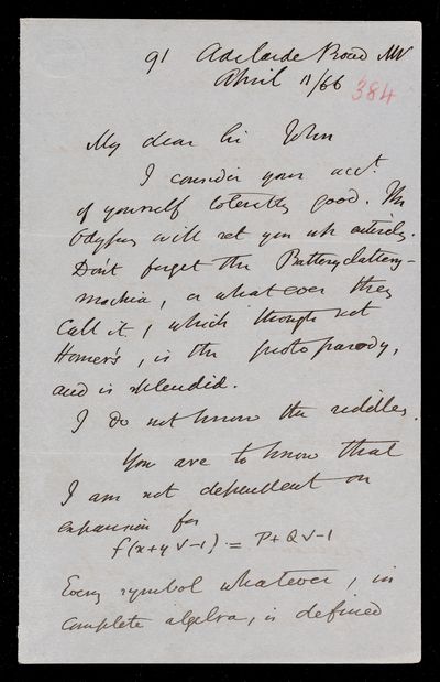 9 May 1869 Sender: Augustus de Morgan Reference number: HS/6/404