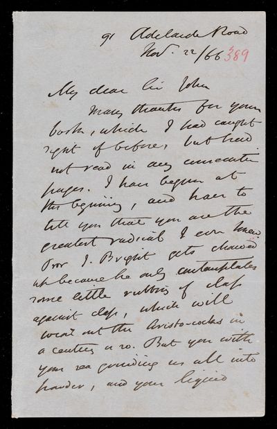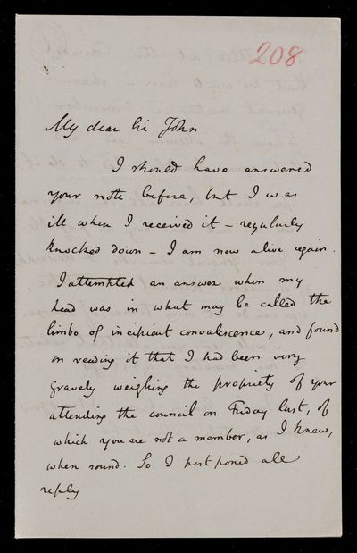 16 October 1867 Sender: John Frederick William Herschel Reference number: HS/24/207Benjamin Disraeli becomes Prime Minister