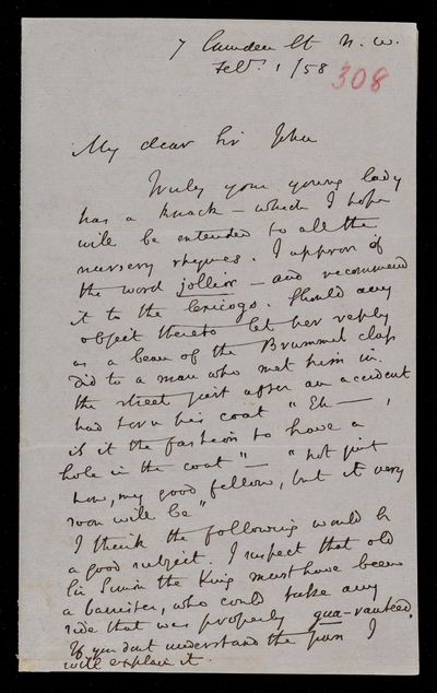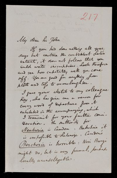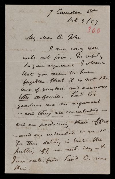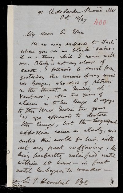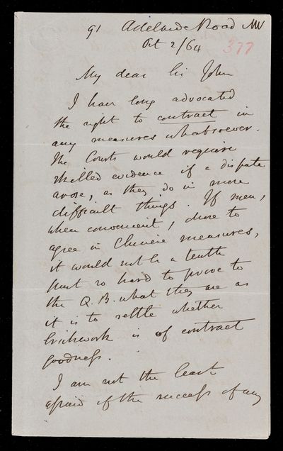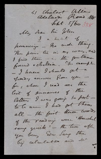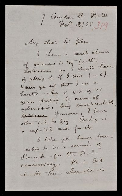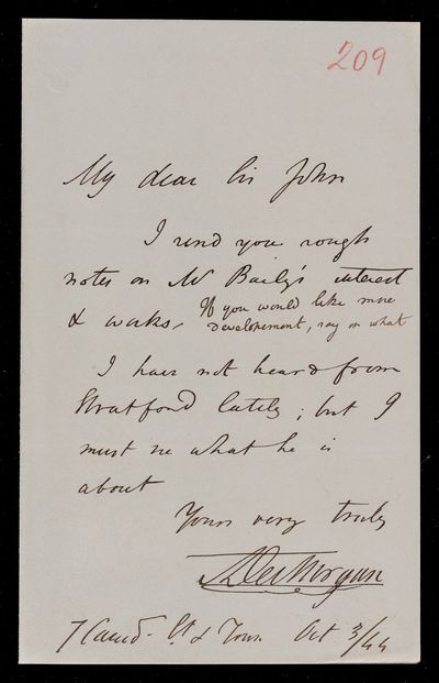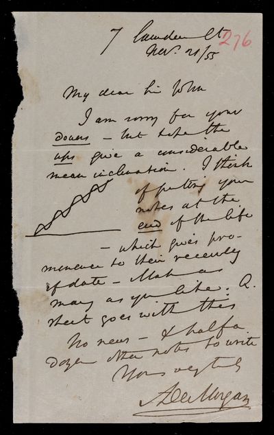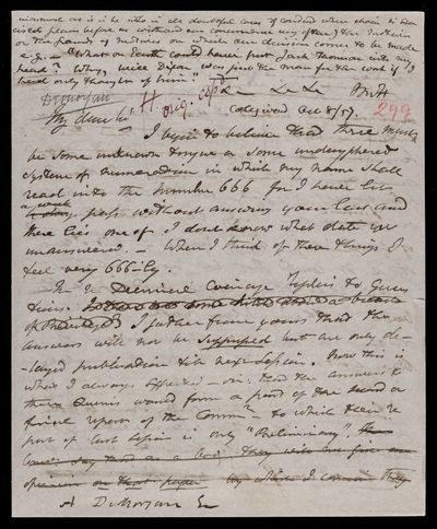 18 October 1867 Sender: Augustus de Morgan Reference number: HS/6/400