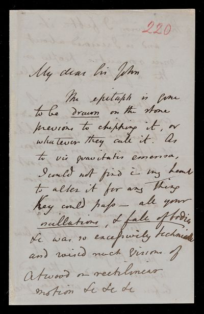 Autograph letter signed by sender. Regarding a correction to Francis Baily's epitaph. Health is improving slowly.