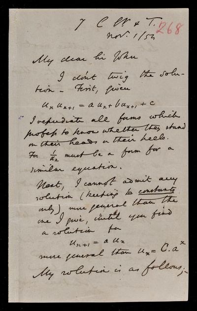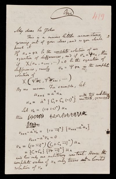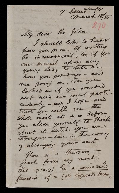 29 October 1870 Sender: Augustus de Morgan Reference number: HS/6/416