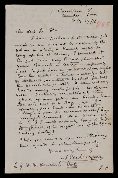 22 July 1869 Sender: John Frederick William Herschel Reference number: HS/24/274