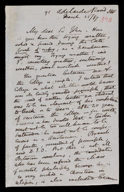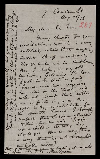 29 August 1867 Sender: Augustus de Morgan Reference number: HS/6/396