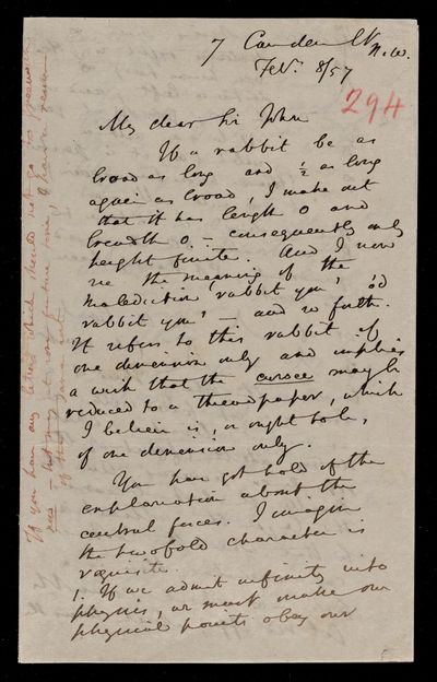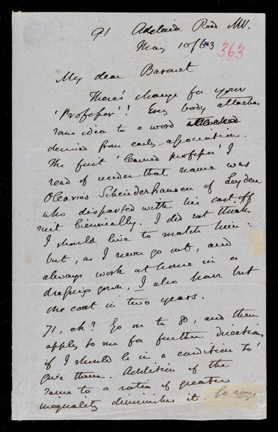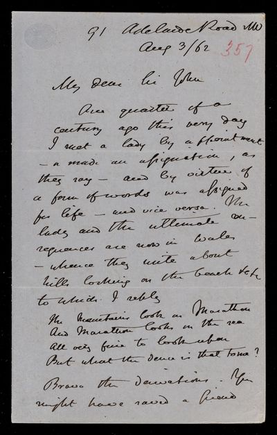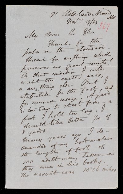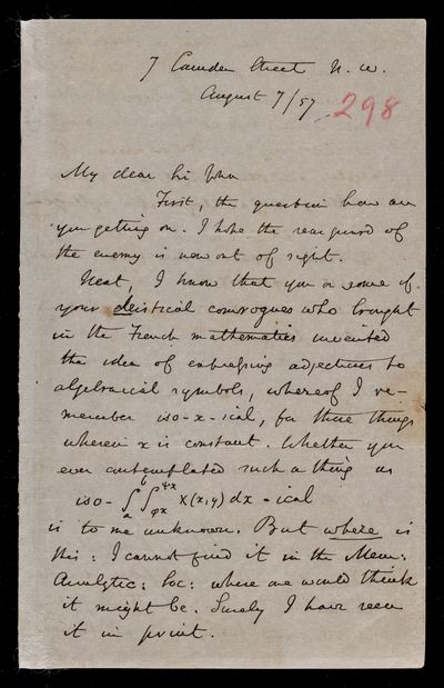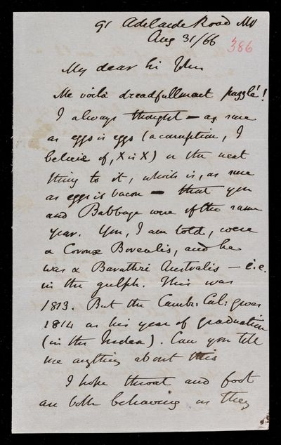 8 August 1867 Sender: Augustus de Morgan Reference number: HS/6/394