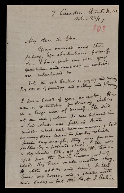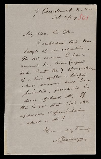 23 October 1867 Sender: Augustus de Morgan Reference number: HS/6/401