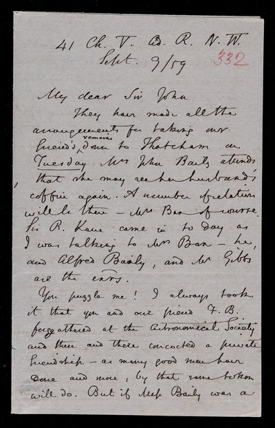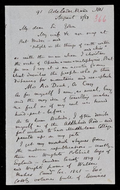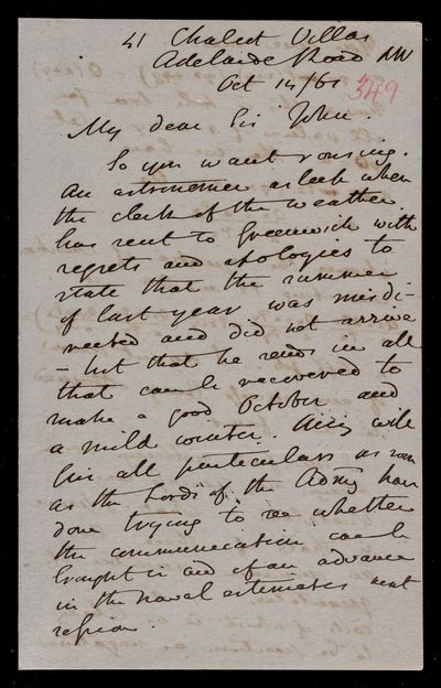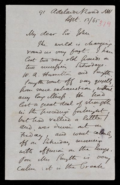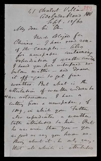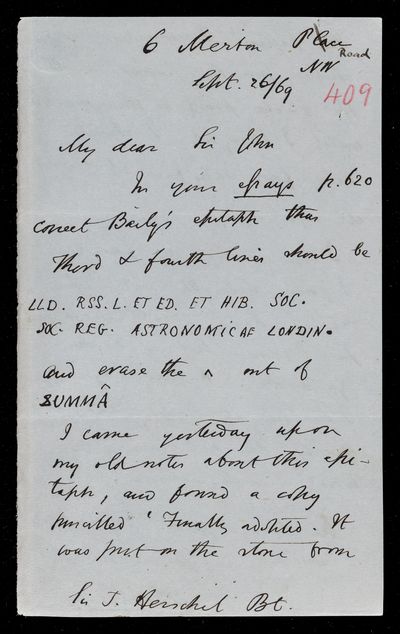 11 September 1869 Sender: John Frederick William Herschel Reference number: HS/6/408