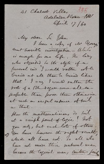 13 April 1870 Sender: Augustus de Morgan Reference number: HS/6/414
