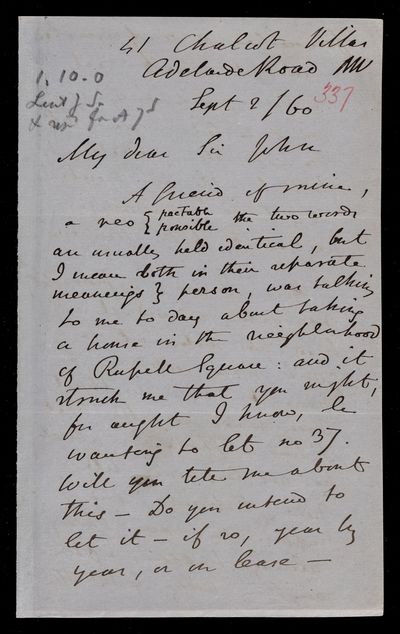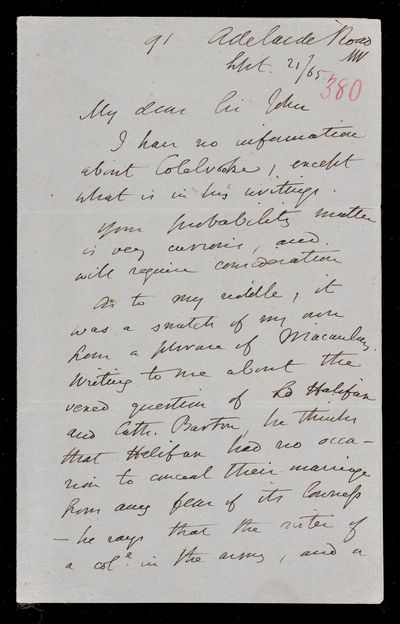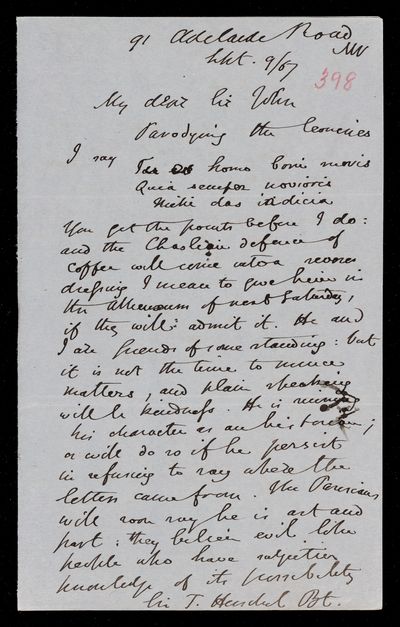 9 September 1867 Sender: Augustus de Morgan Reference number: HS/6/398
