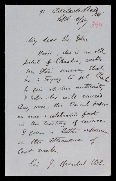 18 September 1867 Sender: Augustus de Morgan Reference number: HS/6/399