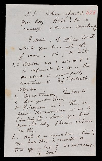 Sender: Augustus de Morgan Reference number: HS/6/428