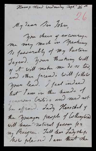 25 June 1847 Sender: Joanna Baillie Reference number: HS/3/25The Pre-Raphaelite Brotherhood is formed, by John Everett Millais, Dante Gabriel Rosetti and others