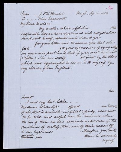 5 June 1828 Sender: Maria Edgeworth Reference number: HS/7/26John Frederick William Herschel and Margaret Brodie Stewart are married in London
